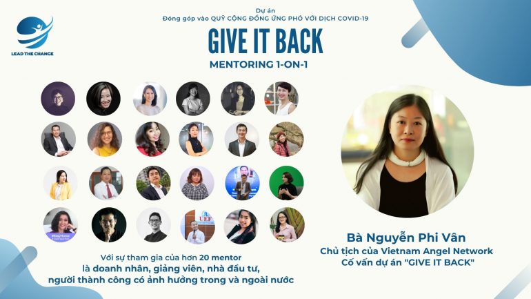 GIVE IT BACK là một dự án gây quỹ cộng đồng theo mô hình Mentoring 1 on 1 nhằm đóng góp vào QUỸ CỘNG ĐỒNG ỨNG PHÓ VỚI DỊCH COVID-19 (COVID-19 Response Community Fund) của LIN với mục đích hỗ trợ cho các NPOs bị ảnh hưởng trực tiếp hoặc gián tiếp bởi tình hình dịch bệnh Covid-19, cung cấp các nguồn hỗ trợ hiệu quả cho cộng đồng người yếu thế. Nguồn quỹ sẽ được phân phối đến các tổ chức đang thật sự cần.